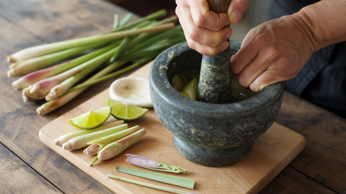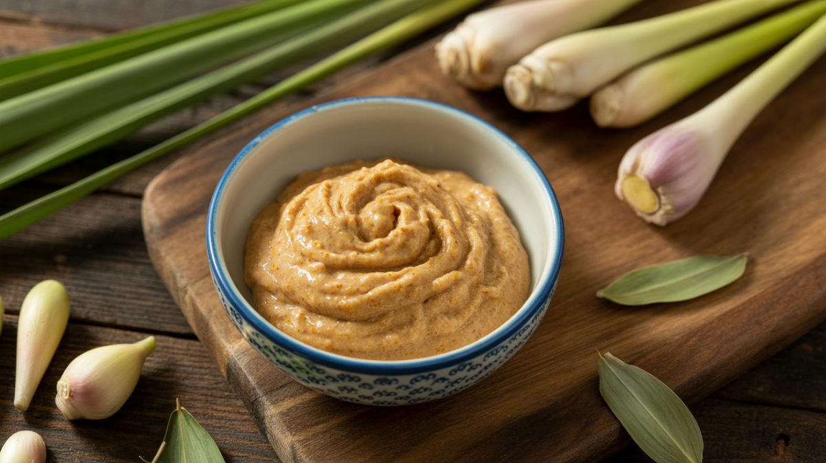 I smash or blend those with dried red chilies, shrimp paste, and kaffir lime zest. You want a thick, fragrant paste. If it’s too dry, add a splash of water to bring it together.